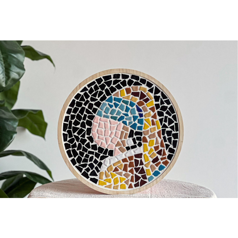 En alsof dat nog niet genoeg is, kun je bij de ronde schaal kiezen voor twee iconische ontwerpen die je met mozaïek gaat vormgeven. Ga jij voor de mysterieuze blik van het wereldberoemde 'Meisje met de Parel' van Johannes Vermeer, of laat je je inspireren door de serene schoonheid van de 'Waterlelies' van Claude Monet? De keuze is aan jou! Alle benodigde materialen, van de ondergrond tot de mozaïeksteentjes en lijm, zijn inbegrepen. Ik sta voor je klaar om je stap voor stap te helpen en tips te geven, zodat jouw kunstwerk precies wordt zoals jij het voor ogen hebt.