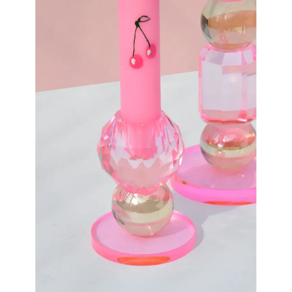 Met zijn glanzende kristallen en roze details zorgt hij voor een vleugje glamour in elke kamer. Perfect voor gezellige diners of als blikvanger op je tafel!