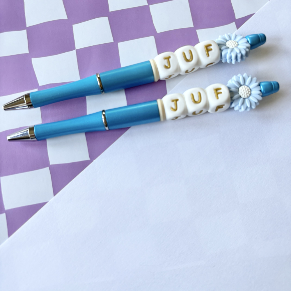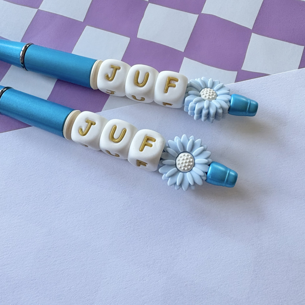 Niet iedere juf houd van roze, dus daarom deze gave blauwe pennen. Super leuk en praktisch kado.