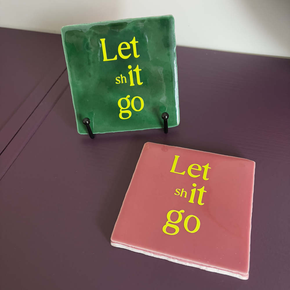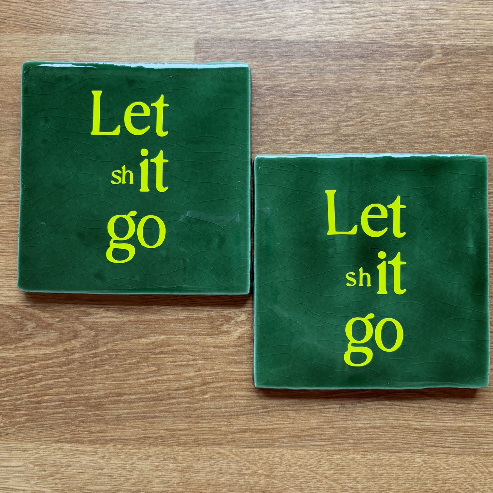 Hoe leuk is deze tegel in de mooie donker groene kleur met neon opdruk. Let shit go, mooi als reminder aan jezelf of als reminder voor een vriend/vriendin. Erg leuk du als kadootje. Maar natuurlijk ook hilarisch om op het toilet neer te zetten.