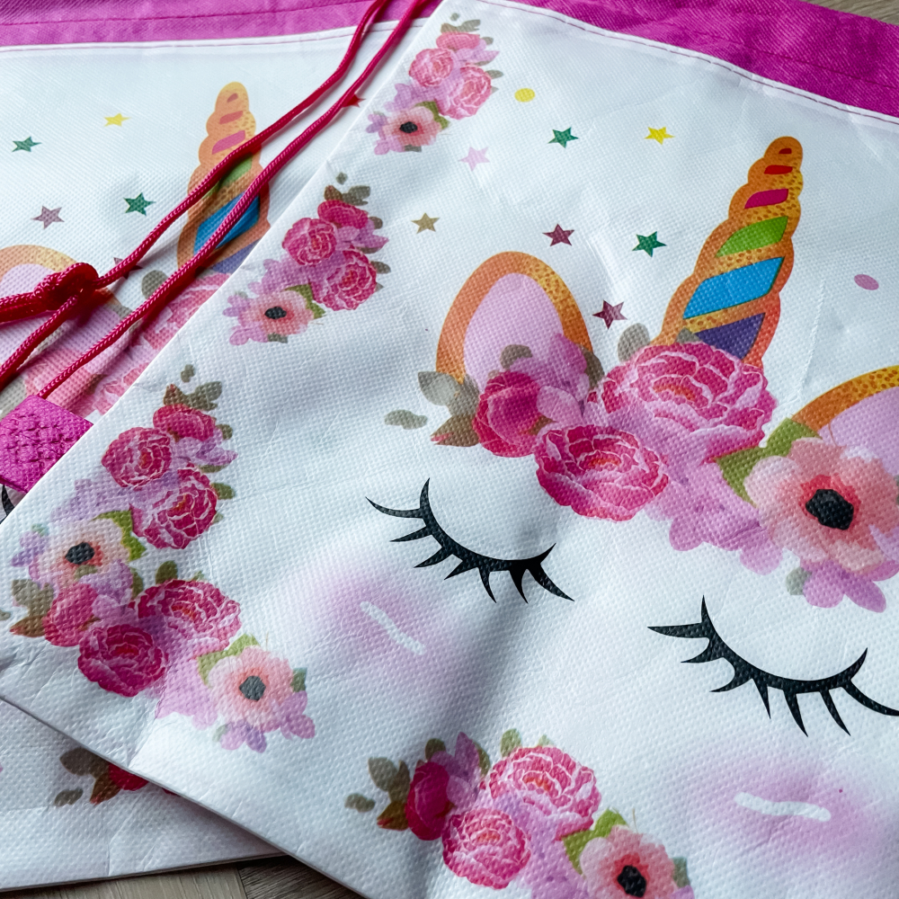De tasjes zijn ook erg leuk voor bijvoorbeeld een unicorn feestje. Hoe leuk is het om na het feestje naar huis te gaan met deze gave tas.