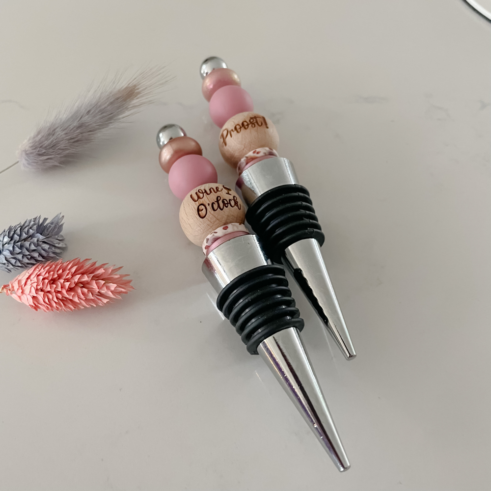 Op de kraal staat aan de ene kant de tekst proost en op de andere kant staan 2 mooie wijnglazen gegraveerd. De wijnstopper is een perfect kado voor de echte wijn liefhebber.